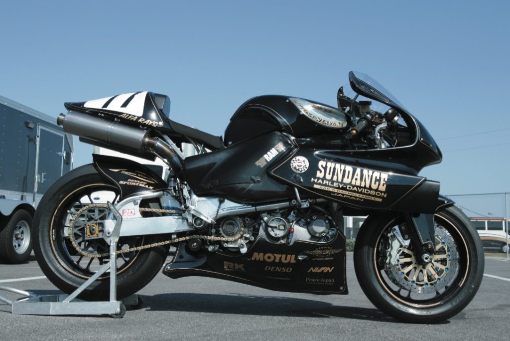 ’98年の”鈴鹿8時間耐久レース”以来、デイトナウエポンⅡのライダーを務める匹田選手ですが、NSR250やRVFなどを走らせた経験と照らし合わせても「デイトナウエポンⅡのコーナリング性能はワークスマシンのソレと遜色がない」とのこと。極限のスピードでサーキットを走るレーシングマシンと、ストリートを走るハーレーでは”求める性能”が大きく乖離したものと誤解する向きもあるのですが、”乗り手が、どんな走りをしたとしても、それに対応する性能や安全性を追求すること”が開発というものです。