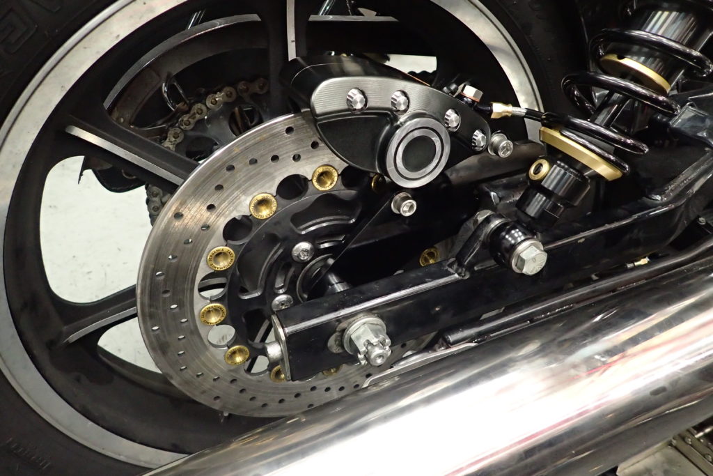 ちなみにこのアルミ・キャリパーサポートはソフテイル用もご用意させて頂いていますので、気になる方は是非、お気軽にお問合せください。ソフテイル用に関してはEVO、TC用それぞれをご用意させて頂いております。