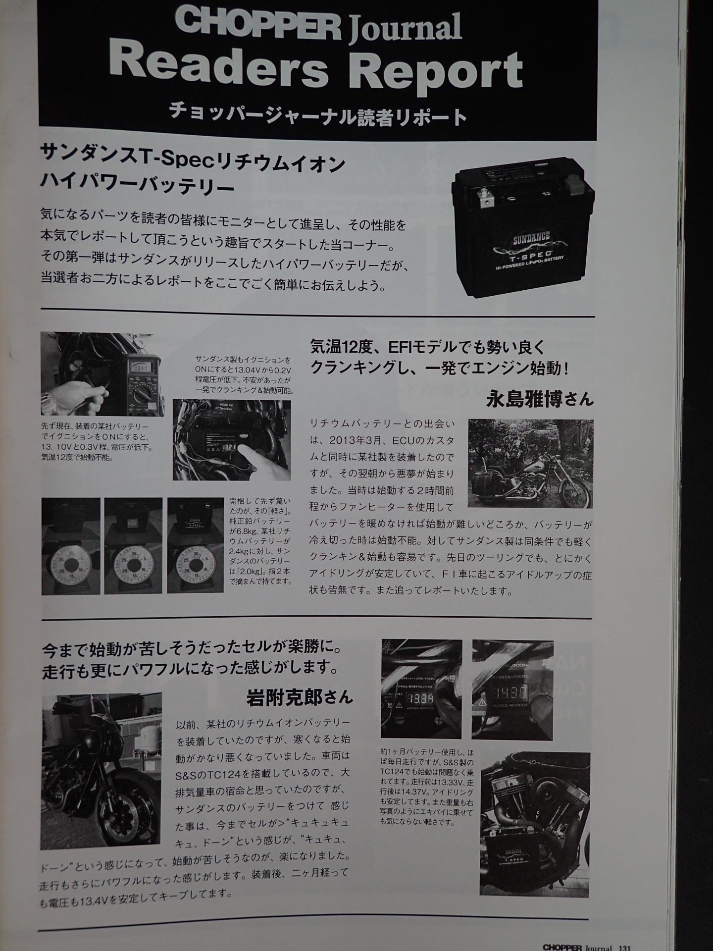 これはチョッパージャーナル誌の方で年末に2個買っていただいて、その2つを読者プレゼントしたインプレッション記事です。