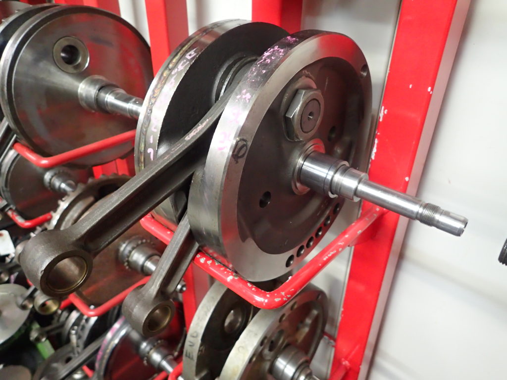 たとえば鋳造と鍛造、二つの異なる手法で作った正月遊びなどで使う『コマ』がある、というシーンを想像してみてください。キッチリと重量バランスが取れたものなら、鋳造であろうが鍛造であろうがコマの回転は変わりません。もちろん、重量バランスが著しく崩れたものなら、いずれのコマでも不安定に回転し、小刻みに揺れることも容易に想像出来るはずです。これが不快な振動の正体であり、鋳造であるとか鍛造であるという部分は関係ない要素です。無論、ロングストローク・エンジンならではの高負荷がクランクピンにかかる、ということを考えれば鍛造であることに対するデメリットは一切ありません。