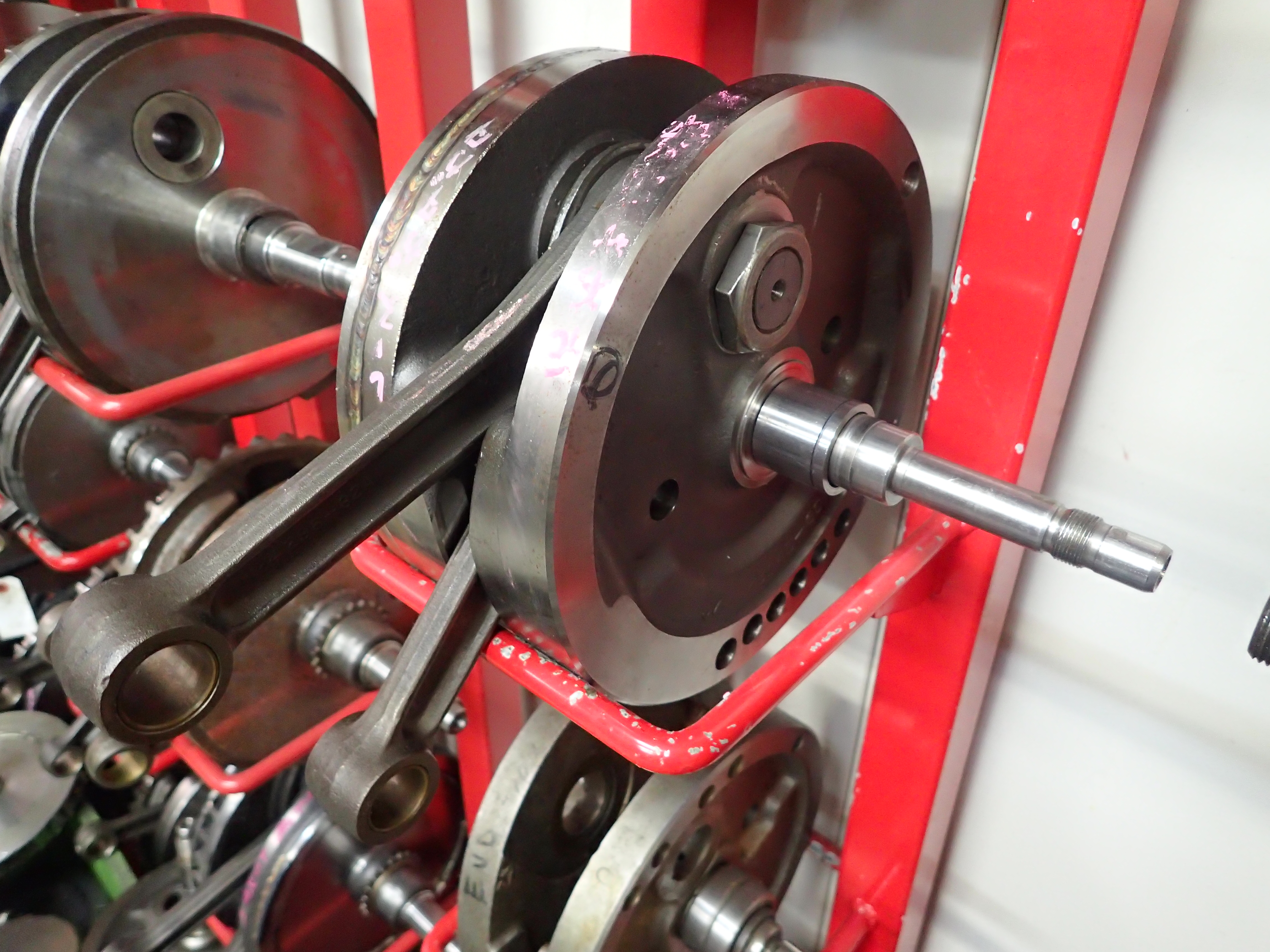 ショベル時代になると鋳鉄に球状黒鉛を含有するダクタイル鋳鉄材を採用することで強度を向上させたのですが、それでも鋳造製の性質上、製品ムラが発生してしまうことは否めません。その為、強度的にはやや乏しく、大きな負荷をかける使用用途ではクランクピン穴と回転軸穴との間でクラックが発生してしまう問題もあります。簡単にいえば加工はしやすいものの強度に乏しいのが鋳造の特徴です。