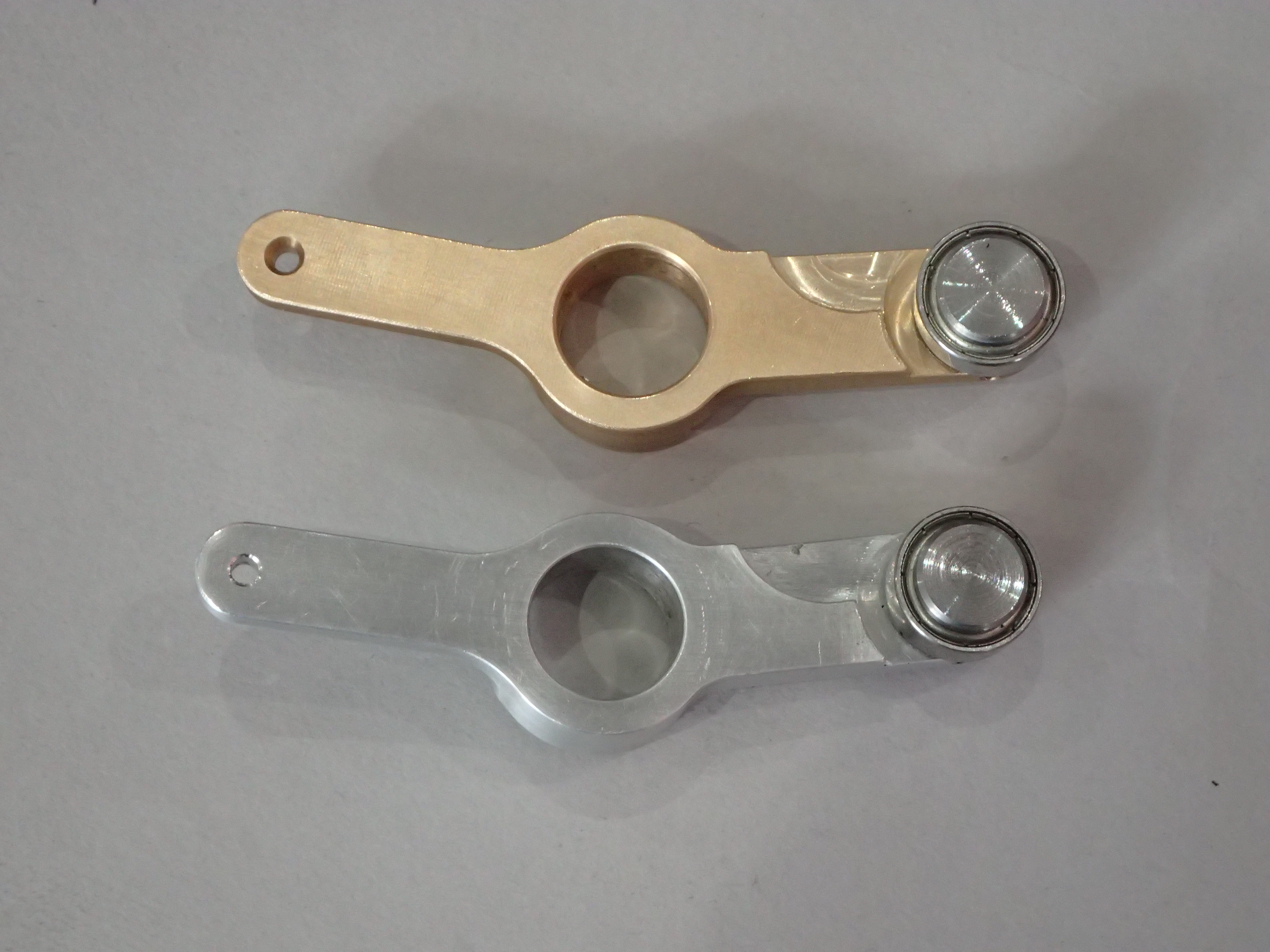 とはいえジュラルミンの削り出しにしても純正のアルミキャストと比べるとオーバークオリティと断言できるほど、その強度は確かです。また純正の場合、このパーツの交換の際、メカニックの不手際などで折れてしまったり、軸受けが破損してしまうことも、ままあるのですが、ジュラルミンの削り出しで製作予定の当社製品ではそのようなことは基本ありません。