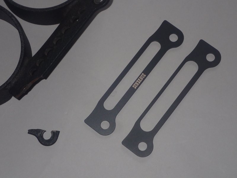 その構造は写真を見ればお分かりのとおり、既存のマウントを挟み込むカタチで強化してしまおうというものなのですが、割れたブラケットもそのままサンドしてしまえば見事に復活。もちろん、まだ破損していないメーターブラケットへの予防パーツとしても絶大な効果を発揮することウケアイです。また素材はサビに強いステンレス、それを削り出しで製品化し、最強の塗膜の強さを誇るセラコートを施したフィニッシュとなっています。頑丈さを求められるパーツだからこそ、より強固な強度とし、スープアップさせるのも当社サンダンスの流儀です。