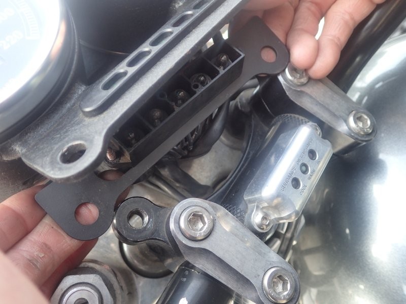それがここに紹介する「スピード&タコメーターブラケット・強化マウント」と呼ぶべきパーツなのですが、これは薄く弱い造りの純正メーターマウントをサンドイッチする形で強化してしまおうというもの。意外とこうしたパーツは市場に流通していないのですが、だからこそリリースする意味があると我々サンダンスは考えます。