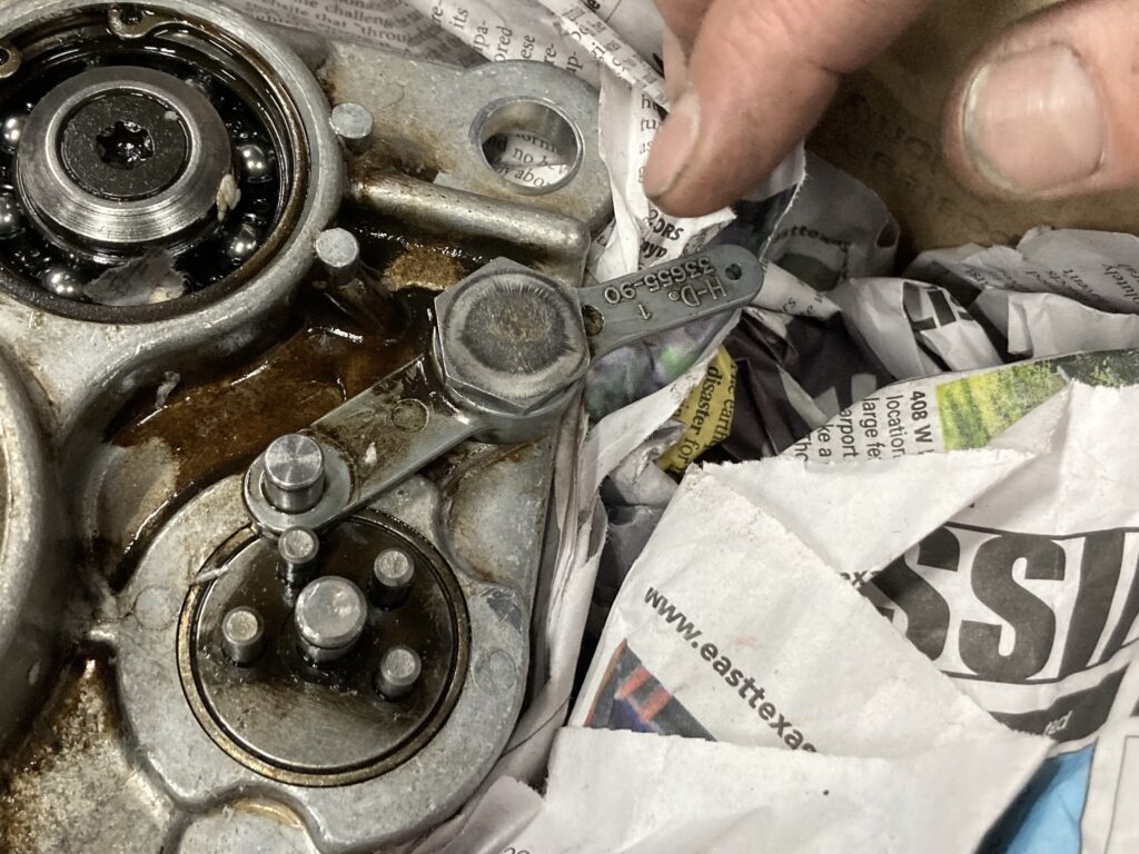ちなみにこのパーツは『シフトドラムの端にある“デテントプレート(星型のプレート)”の凹凸に先端のローラーを押し当てることで、変速した際のギアポジションをカチッと保持するための重要な重要な役割を担っているのですが、このアームが折れたり、先端のローラーが脱落することで“ギアが入らなくなったり”したり、“走行中にギアが抜ける”という症状が出ることがよくあります。