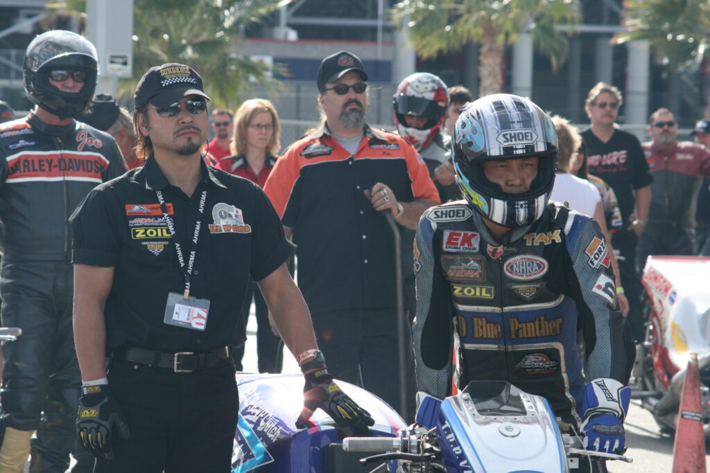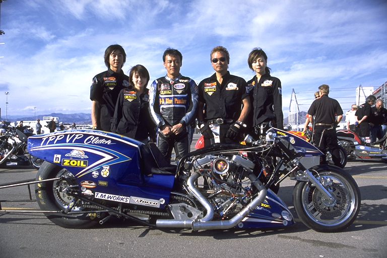アメリカそのものの伝統といえるハーレーのドラッグレースシーンでは、やはり日本人は異端の存在でした。しかしながらTAKの度胸ある走りは、アメリカの強者たちをも感動させる雄姿を見せつけていたのです。