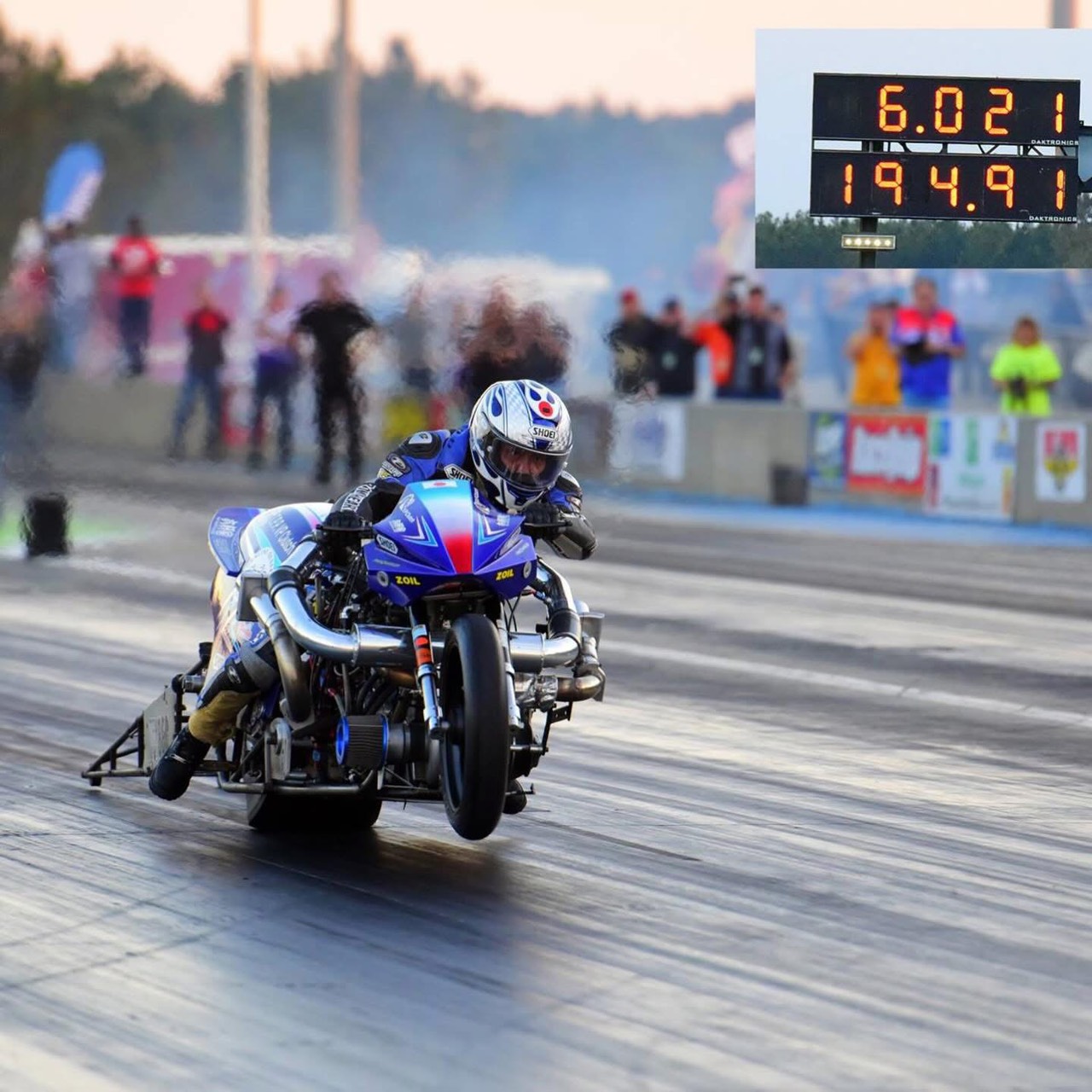 1965年に愛媛県にて生まれた重松氏はアメリカのアリゾナ州にあるメカニックスクール、“MMI”に在学中の1992年、ドラッグレースに出会い、以来、その世界の第一人者として活躍してきました。1998年からはプロフューエル・クラスに参戦し、AHDRA(ハーレーのみで競われるアメリカのドラッグレース協会)で日本人として初勝利を挙げ、2002年からは最高峰のトップフューエル・クラスにステップアップ。当社代表のZAK柴崎は2004年に重松氏のトップフューエルレーシングマシンのチューニングマシンを手掛け、数年に渡ってアメリカ各地を共に転戦してきました。2007年にはフル参戦したAHDRAで年間チャンピオン争いを展開し、2017年にはジョージア州のバルドスタレースウェイでハーレー史上最速となる6秒021を樹立した重松健氏は、文字どおりトップドラッグレーサーであり、ヒーローでした。