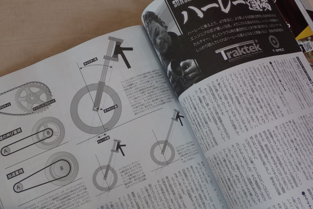 今回の『ハーレー道場』は、そのノウハウの一端を披露するもので車体の『トレール幅』や『オフセット量』、『キャスター角』などについてを解説。ツアラー系ハーレーの問題点についてなどを語っています。
