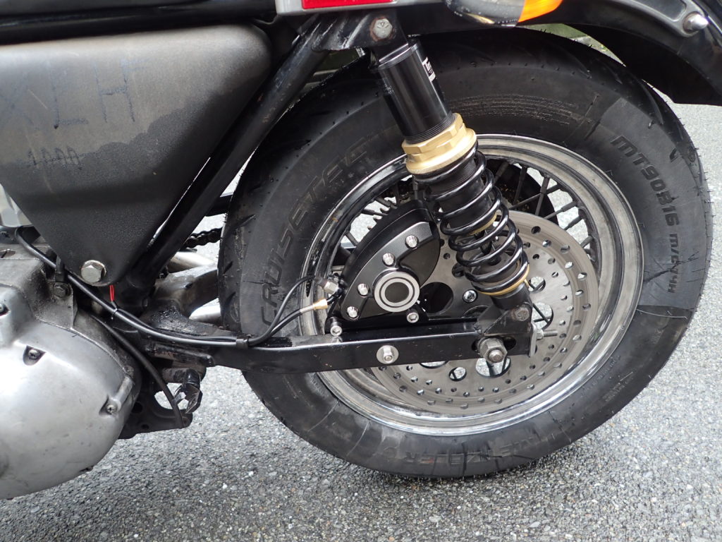 その取り付けにあたってはワンオフのキャリパーサポートを製作し、上の写真のような状態になっているのですが、デザインと相まって違和感を覚えない姿に仕上がっているのではないでしょうか?